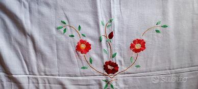tovaglia ricamata rettangolare ( misure 132x 226) senza tovaglioli. piccolo rammendo come da foto. Mai usata.