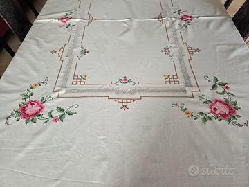 tovaglia rettangolare ricamata a mano, misura 1.60x1.34