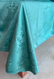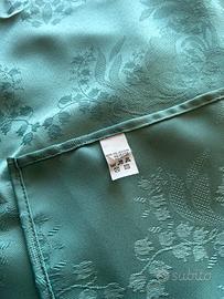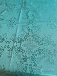 Tivaglia rettangolare verde Misura cm 350 x148 Lavorazione floreale tinta su tinta semilucida In poliestere Mai utilizzata