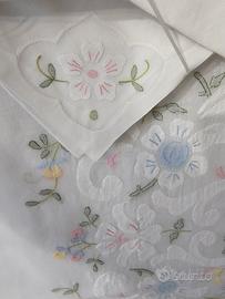 Tovaglia ricamata a mano in lino ed organza