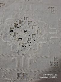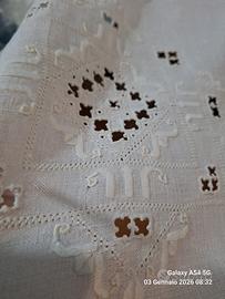 Tovaglia ricamata a mano x12 ricamo punto antico misure 2,90x1,60 con 12 tovaglioli in lino