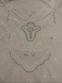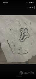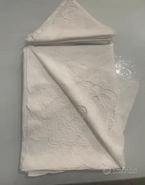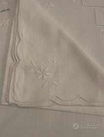 Splendia tovaglia in lino ricamata a mano con 12 tovaglioli, misura 250 x 165cm tovaglioli 42x42 nuova, mai usata