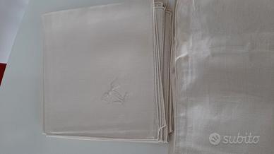 Tovaglia in lino 100% Color crema Misure 170x285 Finemente ricamata a mano 12 tovaglioli