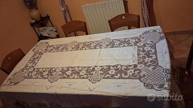 splendida tovaglia ricamata a mano dei primi del '900 che misura 2 60 x 1 70 ,conservata da tanti anni necessita di un lavaggio.