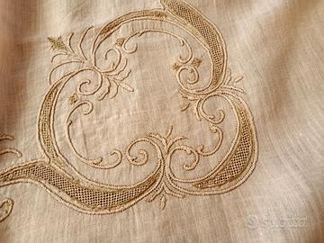 Tovaglia in cotone rosa pallido in perfette condizioni, misure 1,80 x 1,40 con 6 tovaglioli piccoli e 6 grandi, ricamata a mano. 90 euro