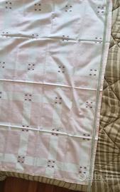 tovaglia rosa con piccoli disegni verdi con 6 tovaglioli lato corto come da foto lato lungo 1 metro e 70 cm