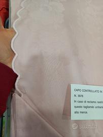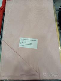 Tovaglia rosa rotonda 8 persone con 8 tovaglioli. Cotone di ottima qualità. Fantasia floreale, nuova, mai utilizzata ne' aperta, ancora nella confezione originale.