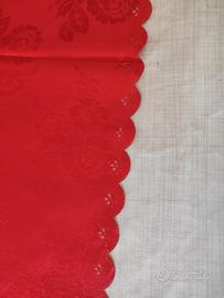 tovaglia rossa con bordo a intaglio con sopra rose perfetta per natale per dodici persone