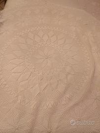 vendo tovaglia rotonda bianca fatta all'uncinetto diametro 1,75