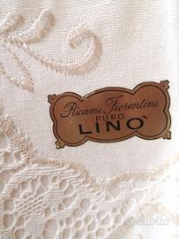 Tovaglia rotonda colore panna in puro lino con ricami fiorentini 1.45x1.45 senza difetti nuova