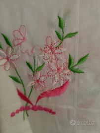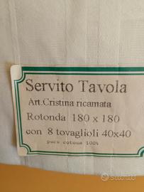 Servizio tessile puro cotone da tavola rotonda , con tovaglia ricamata, più 8 tovaglioli. Cm 180 xv180 . Mai utilizzata, facente parte di un vecchio corredo.