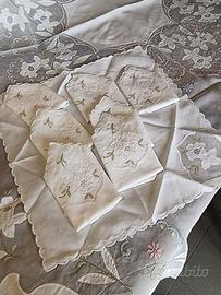 Deliziosa tovaglia rotonda in organza cotone con delicati ricami, diametro cm 1.75, compresi otto tovaglioli