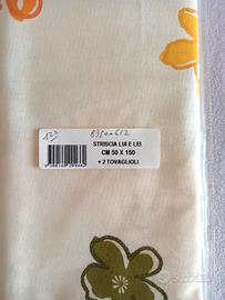 Tovaglia runner 50x150 cm + 2 tovaglioli, fantasia fiorita, mai aperta. ⚠️Prezzo non trattabile.