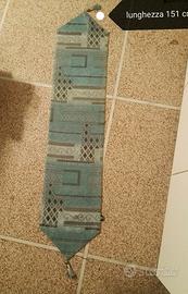Tovaglia, coprimacchie, tappettino Artbisons Runner Fatto a Mano, Runner da Tavolo lunghezza 151 cm. Colore blu turchese astratto geometrico. Come nuovo.