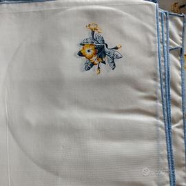Tovaglia misto cotone, NO stiro, con 12 tovaglioli. della Vallesusa bella fantasia a fiori. Mai usata. con scatola originale made in Italy