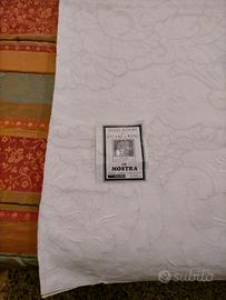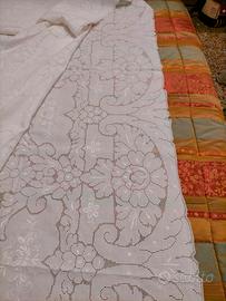 Tovaglia grande da 12 sfilato siciliano a mano bianca cm 265 per 176cm con 12 tovaglioli 48 cm per 45 cm, splendida , nuova ..