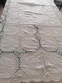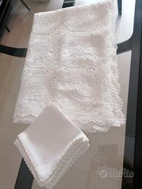 Tovaglia per tavolo da pranzo di colore bianco corredata da 12 tovaglioli, misure cm 2,40 x cm 1,70.