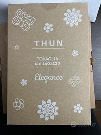Tovaglia Thun 140x220 cm linea Elegance, collezione Emozioni da condividere Conad. Colore beige e bianco. Materiale 100% cotone