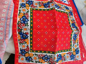 Tovaglia tirolese con tovaglioli per 6 Cotone. Larghezza 1 metro e 30 cm; lunghezza 1 metro e 50 cm. Tovaglioli 34,5 x 34,5 cm. Nuova. Mai usata