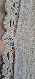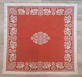 Bellissima tovaglia tirolese 40% lino 60% cotone double face misura 120x120 con presenza di macchia quasi impercettibile nella parte chiara