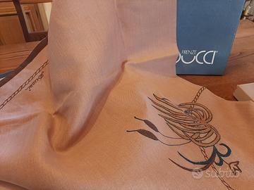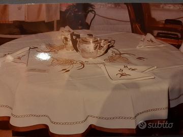 per cessata attività vendo tovaglia tonda x 8, misura m. 1,80, puro lino, finemente ricamata, arte fiorentina disponibile nella variante marrone o bianca.