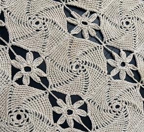 Tovaglia vintage fatta all’uncinetto (a mano) Rettangolare 193x162 Colore Avorio