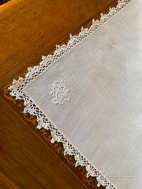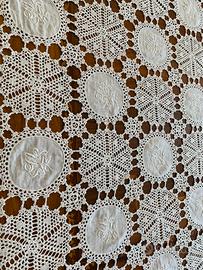 Tovaglia vintage x 12 + 12 tovaglioli realizzata ad uncinetto e con ricami Nuova,mai usata!