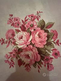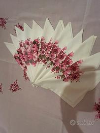 Tovaglia rettangolare vintage in cotone leggerissimo con 12 tovaglioli. Disegno floreale originale