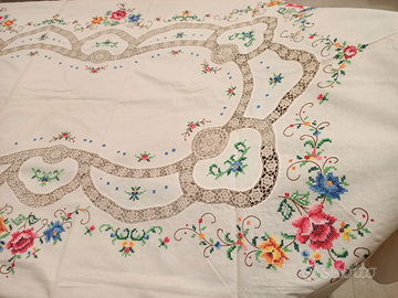 Tovaglia vintage punto croce e uncinetto