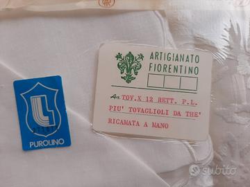 ARTIGIANATO FIORENTINO Tovaglia in puro lino più 12 tovaglioli RICAMO A MANO. NUOVA MAI USATA