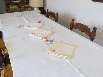 - bella tovaglia da 12, ricamata a mano, con relativi tovaglioli, usata ma in ottimo stato, cm. 135 x 240: euro 90