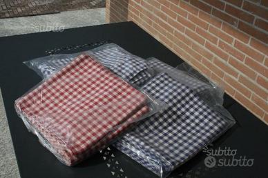 Lotto di circa 35 tovaglie a quadretti bianco e blu da 1 cm 100% cotone, ancora nuove mai utilizzate.