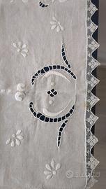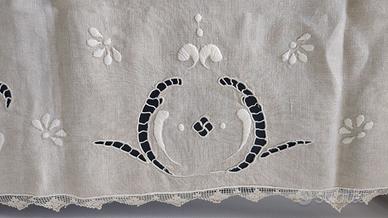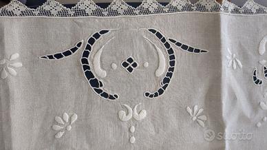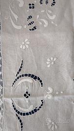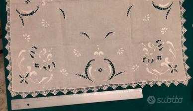 Tovaglietta antica quadrata in lino beige, finemente ricamata ed intagliata a mano, con orlo a filet Misura cm 70x70 Con segni del tempo, macchioline ed imperfezioni, come da foto (posso fornire ulteriori immagini su richiesta). #lino #vintage #ricamo #filet