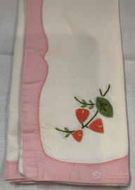 Tovaglietta Con Tovagliolo Bianca Bordo e Campanula Rosa mis 45x30