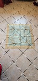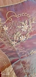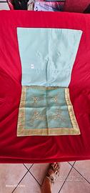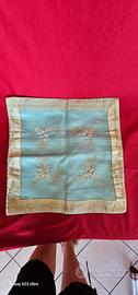 Tovaglietta quadrata in tulle/ organza trasparente verde con ricami in color oro e perline,misura