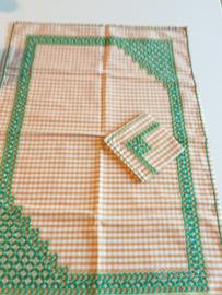 Tovaglietta da colazione a quadretti gialli con tovagliolo ,ricamata a mano.Artigianato tirolese.