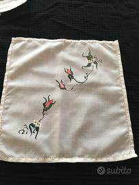 tovaglietta dipinta a mano con decoro dipinto a mano di rose selvatiche rosa simili ai decori ceramici, in materiale robusto