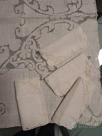piccola tovaglia ricamata sfilata siciliano con 4 tovaglioli ,sempre ricamati.