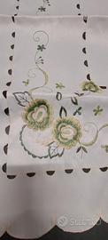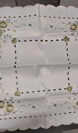Tovaglietta quadrata, misure 86 x 86 cm. Ricamato e intagliato a macchina. Mai utilizzata. Tessuto lucido, lavabile comodamente in lavatrice e asciuga in un attimo. Disponibile alla spedizione.