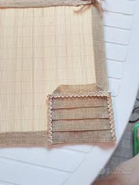 tovagliette in bambù con tasca porta posate, disponibili 2 pezzi. 3 euro al pezzo.