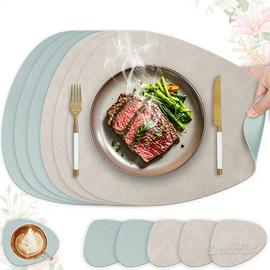 Tovagliette-Tappetino in PVC per Bar-Ristorante Tovagliette da tavolo in PU con motivo di pelle di vacca, 6 tappetini + 6 sottobicchieri, Vari colori e forme e Trame in pelle sintetica Idrorepellente ( non assorbe ) antiscivolo adatto per Ristoranti Bar e Casa Alcuni disponibili e altri su ordinazione entro 20 giorni. Prezzo con spedizione per 6 set Completi sottobicchieri 49.90 euro Per Quantita' contattare o venire in sede. Facciamo Allestimenti per Location di Tanti Prodotti β π Ingrosso Divani -Tavoli - Sedie β π Fabbrica Divani varie misure e colori Ecopelle e Velluto β π Tavoli Con Base Centrale in Ghisa Con Piano in Melaminico β π Sedie πͺπͺ in polipropilene colorate Certificate Esposizione in Piazzale Sallustro,16 Casavatore Napoli 80020 TEL FRANCESCO TEL. Martina