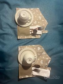 Fantastiche tovagliette poggia tazza per la prima colazione realizzate xon materiale lavabile e doppio fatta anforma di casetta con comifnomo e tasca porta posate e rovagluolo realizzate xompletamente a mabo molto comode e puo essere un originale idea regalo