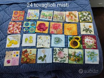 vendo tovaglioli da usare normalmente o per decoupage, separatamente o anche insieme 26 tutti insieme ,se no 1.00 euro a testa quelli che si vuole il numero che c'è nelle foto è di quanti c'è né per tipo .