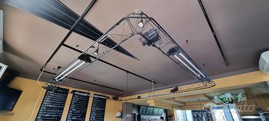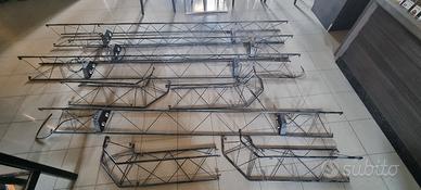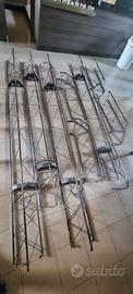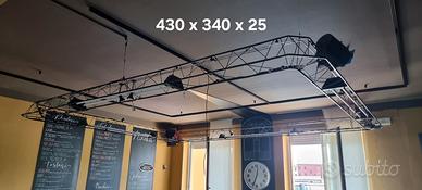 Vendo traliccio metallico per illuminazione di locali uffici o piccoli palchi per musica predisposto per tubi al neon\led ( facilmente asportabili) e pratico per istallazione di fari o faretti led. Misura 15 mt lineari suddivisi in pezzi di varie misure di cui 4 curve con la possibilità di creare varie forme.