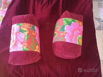 e due cuscini 20x20x40 cm abbinati CoinCasa - le trapunte da un lato hanno un motivo floreale dall'altro sono a tinta unita, i cuscini hanno la fascia floreale removibile, una trapunta è stata usata un po' di più dell'altra - 75€ tutto