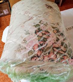 Vendo Per inutilizzo sia trapunta mezza stagione a fondo azzurro a fantasia che piumone invernale fondo rosa chiaro con motivo floreale per letto singolo tenuti molto bene. Vendo a €25 tutti e due.
