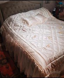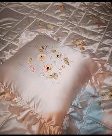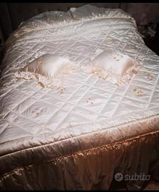 Trapunta matrimoniale di raso dipinta a mano con 2⃣ cuscini. Nuova con sacchetto imballato Color avorio