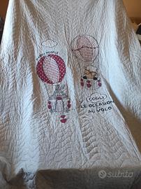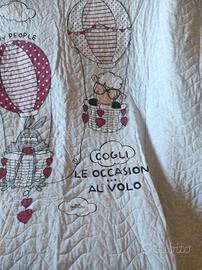 trapunta leggera ( estiva) per letto singolo marca Happy people. misure 1.64x2.60. esterno in cotone con leggera imbottitura in poliestere. non presenta difetti ne segni di usura . colore grigio chiaro con disegno pecora e lupo