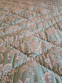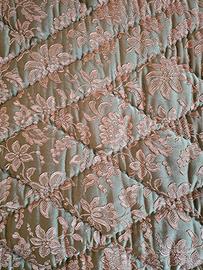 Vendo trapunta per letto matrimoniale con motivo floreale ricamato su uno sfondo verde oliva con riflessi satinati. misure circa 230 x 215 cm Consegna solo a mano in zona