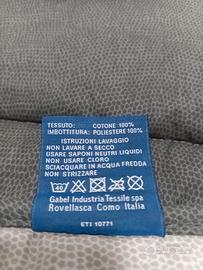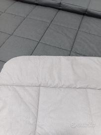Trapunta matrimoniale Gabel Chromo nuova, double face, grigio chiaro e grigio scuro. Invernale, caldissima. Imbottitura: 100% morbida fibra anallergica di poliestere da 300 gr/mq. Tolta dalla confezione solo per fare la foto sul letto.